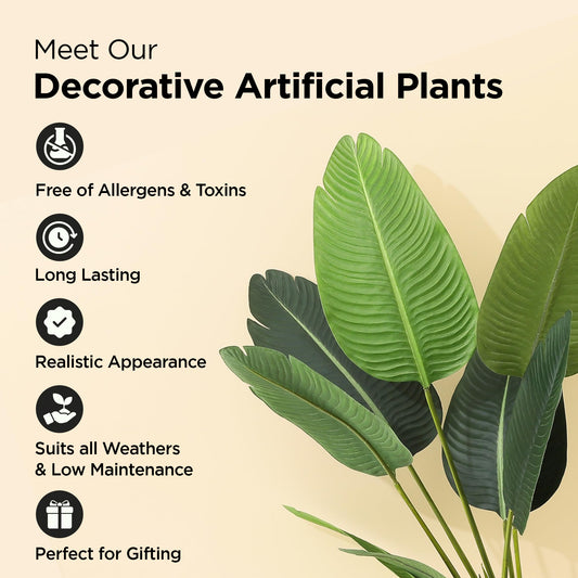 Artificial Plant for Home Decor 117 cm | Travelers Banana | 8 Green Leafs | Plastic | Office Desk Bedroom Living Room Balcony | Table Top Shelves | Natural Look Decoration