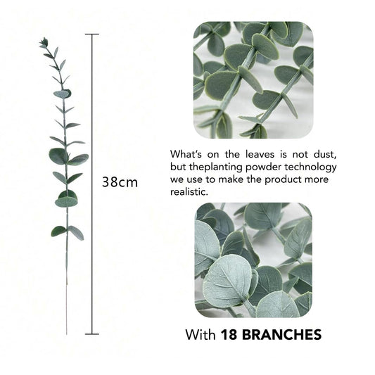 Eucalyptus Leaves Artificial Bunch for Vase & Home Decor | Artificial Green Leaves Sticks for Decoration | Green Leaf Decoration Eucalyptus Plant | Artificial Plants Without Pot (18 Stems)