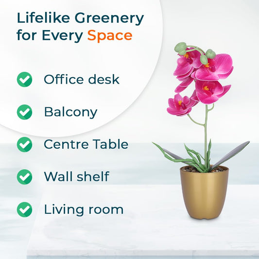 Artificial Plants for Home Decor with Pot(44cm)|Aesthetic Room Decor Items for Bedroom|Flower Pots for Home Decoration|Show Pieces for Home Decor | Hot Pink Orchid Flowers for Home Decor Items