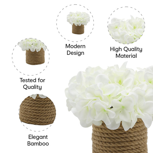 Artificial Hydrangea with Rope Vase | 20cm x 22cm x 17cm | Garden-Inspired Aesthetics | Showpiece for Home decor, Office Desk, Bedroom, Balcony, Living Room, Table Top | Realistic Decorative item