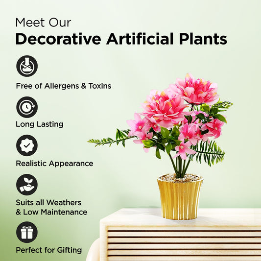 Kuber Industries Artificial Plants for Home D?cor|Natural Looking Indoor Fake Plants with Pot|Artificial Flowers for Decoration (Pink)