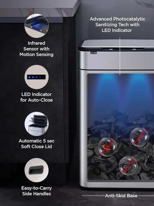 Stainless Steel Sensor Dual Compartment(13L + 13L) Dustbin with Lid- Smart Dustbin for Kitchen, Bedroom, Bathroom, and Office-2 removable bucket for trash and recyclables- Easy to Clean, and Use
