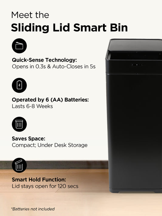 Pack of 2 Sensor Dustbin | Sliding Big Sensor Dustbin | Touchless Trash Can | Smart Dustbin for Bedroom-Office-Living Room | Automatic Garbage Can | HN-ZH-BLK-42L | Black