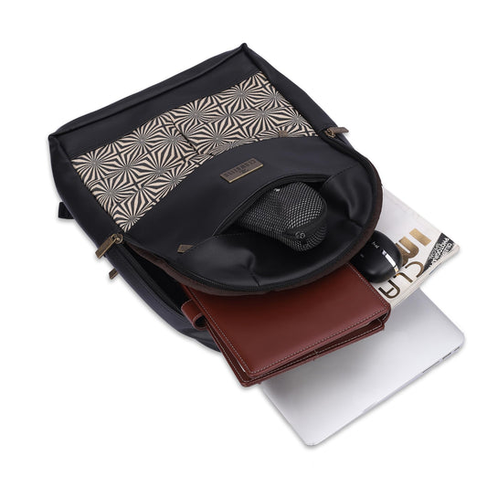 THE CLOWNFISH Cybershield Series 15.5 liters Faux Leather & Tapestry Fabric 14 inch Laptop Backpack College School Bag Casual Travel Backpack For Men and Women (Black)