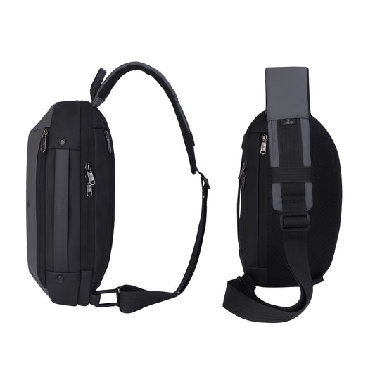 THE CLOWNFISH Water Resistant Polyester Unisex Travel Crossbody Sling Bag Chest Pack with USB charging port (Black)