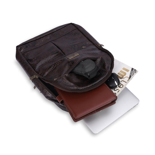 THE CLOWNFISH Cybershield Series 15.5 liters Faux Leather Crocodile Finish 14 inch Laptop Backpack College School Bag Travel Backpack For Men and Women (Dark Brown)
