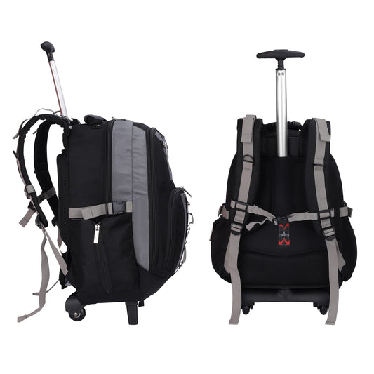 THE CLOWNFISH Tramp 33 Litre Water Resistant Polyester Two Wheel Laptop Trolley Backpack (Grey- Size 48 Cm)