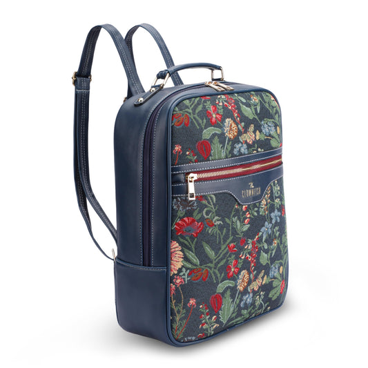 Casual Womens Backpack - Tapestry Fabric & Vegan Leather | Shoulder Strap | 10L | Urban Chic Navy Blue