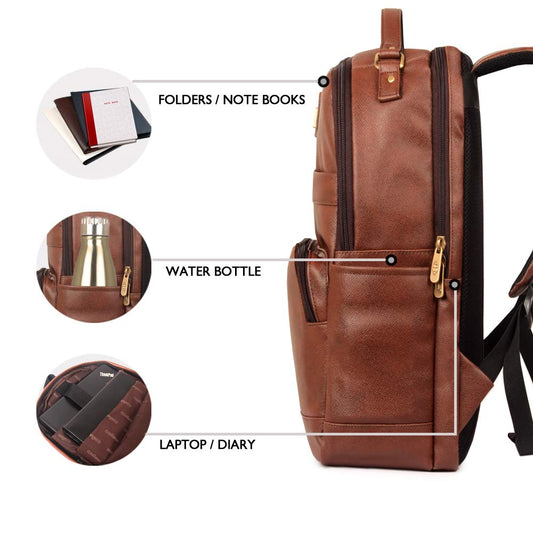 THE CLOWNFISH Victor 27 liters Vegan Leather Mature Unisex Laptop Backpack for 14 inch Laptop (Amber)