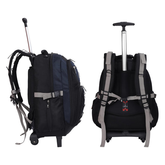 33L Water Resistant Polyester Laptop Trolley Backpack with Two Wheels | Perfect for Travel | 48 cm | Navy Blue