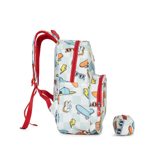 THE CLOWNFISH Cosmic Critters Series Printed Polyester 15 Litres Kids Backpack School Bag with Free Pencil Staionery Pouch Daypack Picnic Bag for Tiny Tots Of Age 5-7 Years (Grey - Cheque)