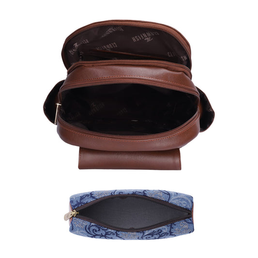 THE CLOWNFISH Combo Of Minerva Faux Leather & Tapestry Women's Backpack College School Girls Bag Casual Travel Backpack For Ladies & Expert Series Pencil Pouch Pen Case (Blue-Floral)