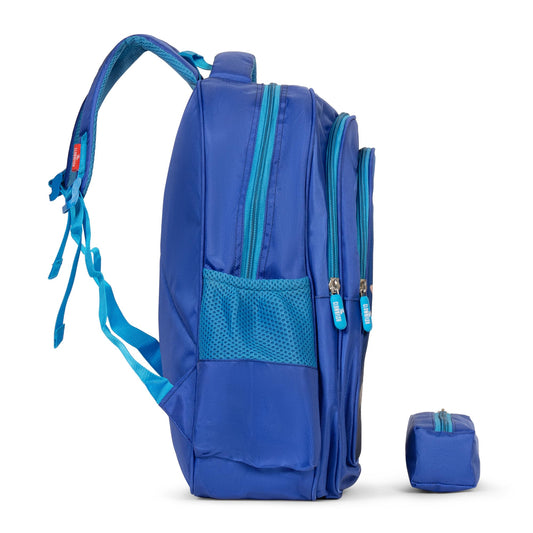 THE CLOWNFISH Cosmic Critters Series Printed Polyester 15 Litres Standard Backpack School Bag With Free Pencil Staionery Pouch, Picnic Bag For Boys & Girls, Age 5-7 Years (Blue)