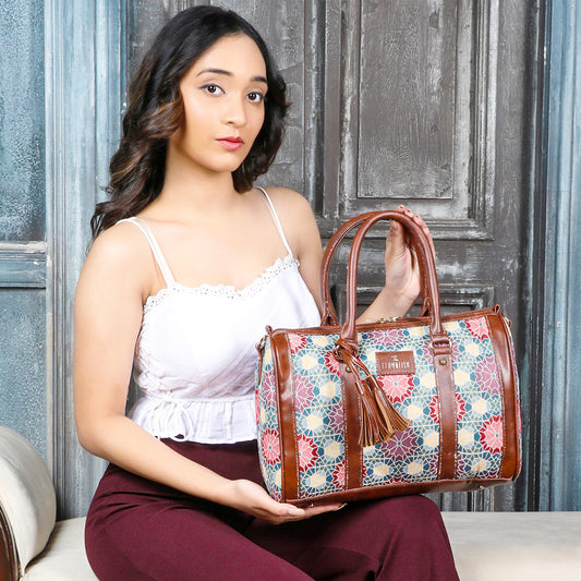 THE CLOWNFISH Lorna Tapestry Fabric & Faux Leather Handbag Sling Bag for Women Office Bag Ladies Shoulder Bag Tote For Women College Girls (Multicolour-Floral)