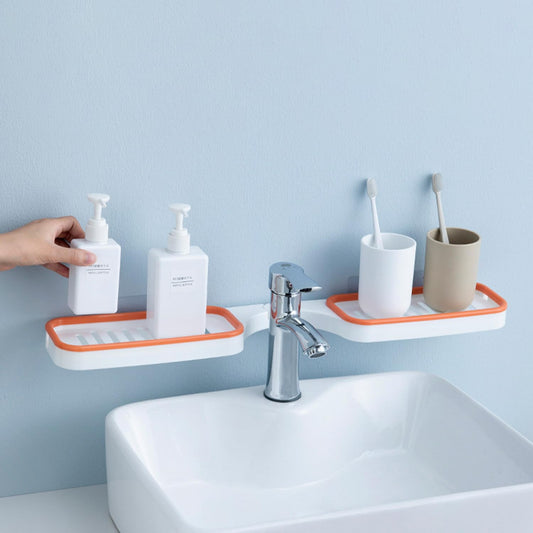 Kuber Industries Bathroom Shelf | Bathroom-Kitchen Shelf Wall Holder | Storage Rack | Multipurpose Kitchen-Bathroom Shelf | Bathroom Corner Rack | Self-Adhesive | JL2021071OR | White & Orange