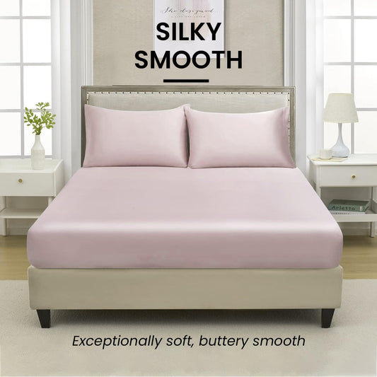 100% Bamboo Bedsheet for King Size Bed with 2 Pillow Covers | Luxuriously Soft, Breathable and Naturally Anti Microbial Thermoregulating Bed Sheet 400TC (Peach)