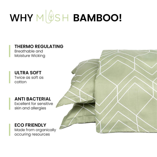 100% Bamboo Printed King Size Bed Sheet 108x108 inches | 300TC Bedsheet for Double Bed | Ultra Soft, Naturally Anti Microbial & Cooling Double Bed Luxury Sheets | Pack of 1, Subtle Sage