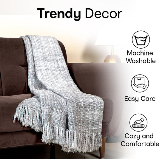 Decorative Chenille Sofa throw|Throw for Sofa, Bed & Couch|Ideal for Indoor & Outdoor "70x51" Inches-Pack of 2 (Grey)