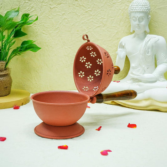 Metal Dhoop Dani Loban Burner Holder Stand for Home | Dhup Kapoor Dani for Puja with Wooden Holder | Sambrani Holder | Dhuni Burner Samrani Batti Stand for Pooja | Dhup Stand Incense Oud Burner
