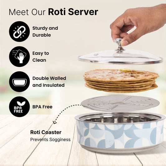 Fleur D'or Roti Box | Casserole with Wooden Lid | BPA Free | Food Grade | Serving | Easy to Carry | Kitchen Organizer and Kitchen Storage | Wooden Chapati Box