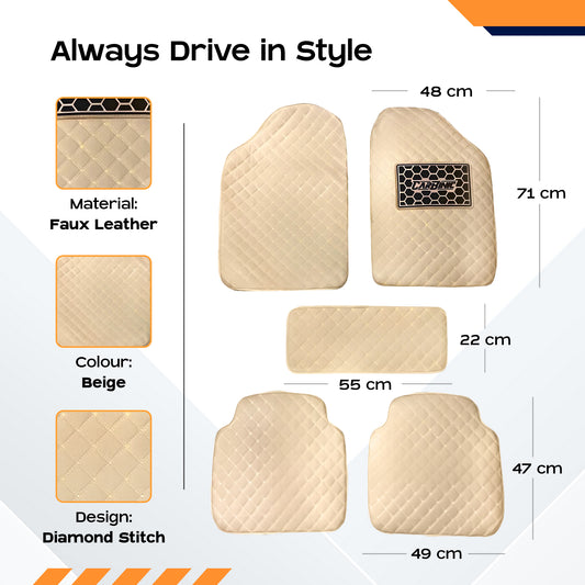 CARBINIC 4D Premium Car Foot Mat - Universal Fits for All Cars | Premium Double Layered Leather| Shock Absorbent | Waterproof | Anti-Skid | Heel Pad | Car Accessories Interior | Beige