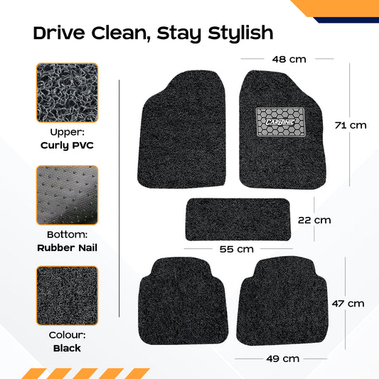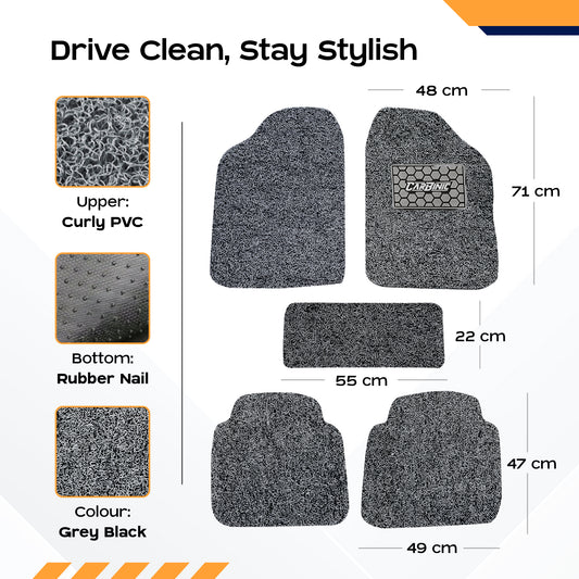 CARBINIC Anti Skid Car Mats - Universal Fit - All Cars | Curly/Noodle Car Floor Mat | All Weather PVC Car Mat | Premium Vinyl Rubber Car Mats | Car Accessories | Set of 5- Grey Black