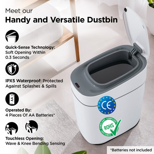 Dustbin For Kitchen | Plastic Dustbin With Lid | 9L | Waterproof | Dustbin For Bathroom | Dustbin For Bedroom | Dustbin For Home & Office | Narrow Slit Sensor | Small Dustbin | White