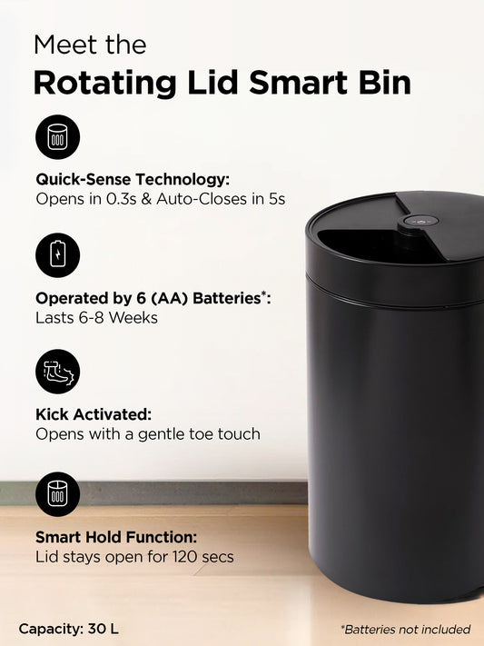 30L Dustbin For Kitchen | Dustbin For Bathroom | 51cm Automatic Smart Sensor Dustbin For Bedroom | Steel Dustbin With Lid | Hands Free Access | Dustbin For Office | Garbage Bin - Black