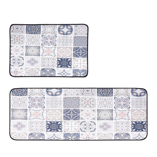 8 Pcs Kitchen Mat | Anti-Slip & Absorbent Kitchen Rug Mat | Door Mat & Kitchen Runner Set | Non Woven Floor Mat for Home, Kitchen, Living Room | HY0103 | Blue & White