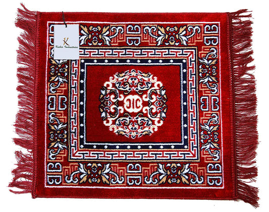 Traditional Carpet/Pooja Mat|Square Shape & Soft Velvet Material|Maditation Prayer Mat|Size 60 x 60 CM,Pack Of 2 (Red)