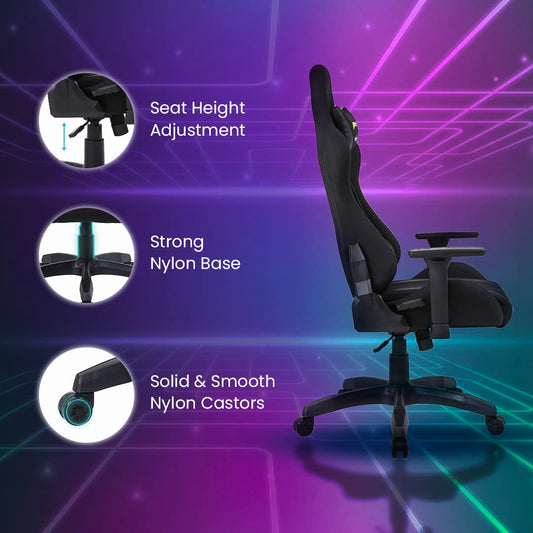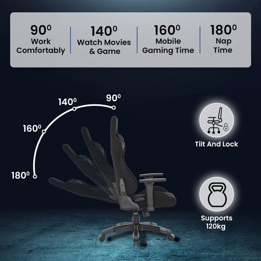 Snipe Gaming Chair with Adjustable Headrest & Lumbar Support,135° Recliner Chair| Stretchable Armrest with Footrest, Crusader Gaming Chair Series, Black - Plastic