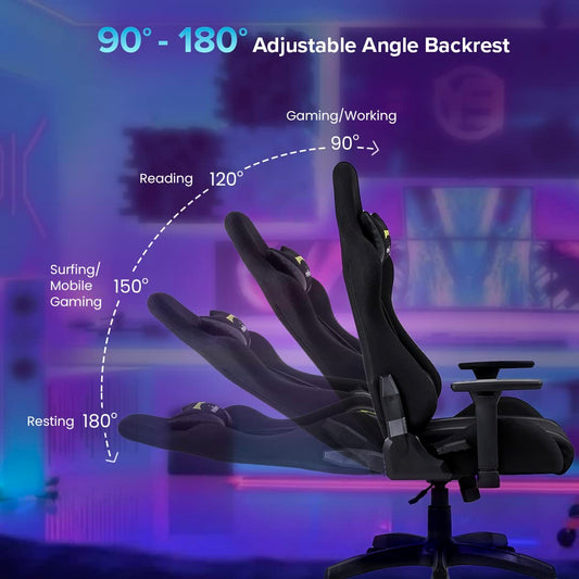 Combo: Ergonomic Gaming Chair & Extended Mouse Pad | Adjustable Neck & Lumbar Pillow | Solid | Black