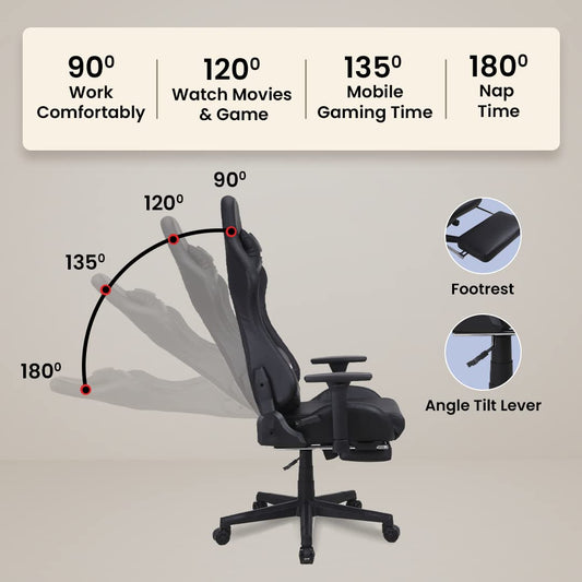 Thunder Ergonomic Gaming Chair with Adjustable Lumbar Support & Headrest, 3D armrest| Multifunctional Home & Office Chair | 180 Recliner Chair with footrest (Black)