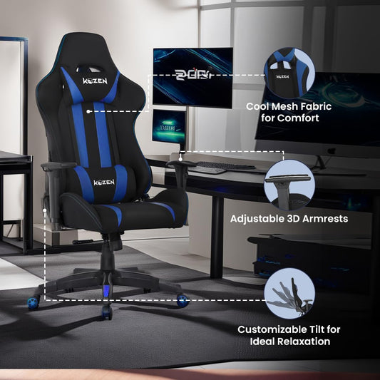 Diablo Gaming Chair - Ergonomic, 3D Adjustable Armrests | Includes Neck & Lumbar Support | Blue