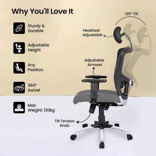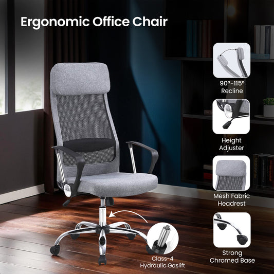 Plastic Zenith Ergonomic High Back Chair For Home, Office, Study Table With Recline|Height Adjustable Cushion Seat With Headrest (Grey) (Grey)