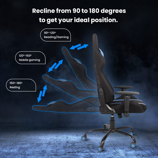 Diablo Gaming Chair - Ergonomic, 180° Recline | Adjustable Neck Pillow & Lumbar Support | Blue (Black)