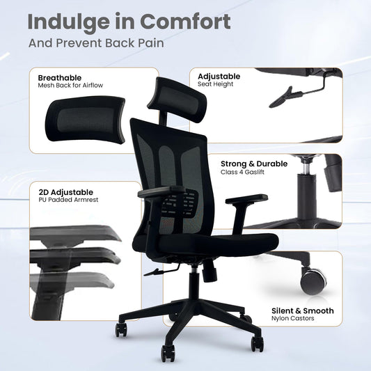 Wisdom Office Chair/Ergonomic Chair for Office Work At Home/Study Chair for Students/Chairs for Office Work/High Back Office Chairs for Work from Home/Executive Chair/Office Chairs-Black