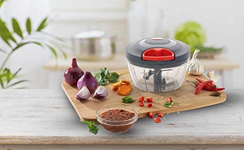 Pull Vegetable Chopper for Kitchen with Durable String | Mini Hand Chopper for Kitchen Use with 3 Stainless Steel Blades | Onion, Garlic, Ginger, Fruits & Dry Fruits Chopper- Black & Red