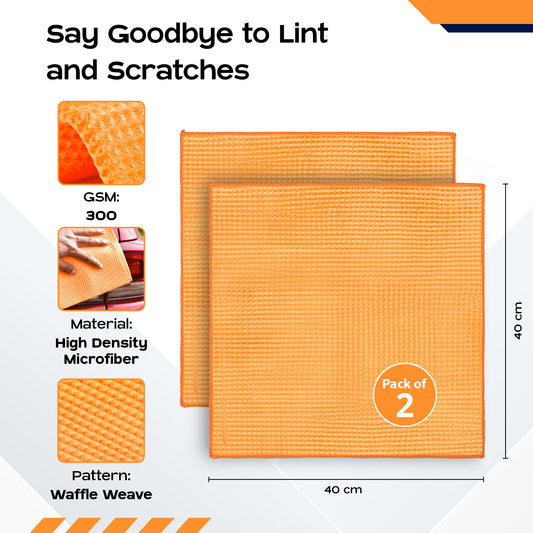 CARBINIC Waffle Microfiber Car Cleaning Cloth | Super Absorbent Car Cleaning Accessories | Multipurpose Cleaning Duster for Interior & Exterior Care | Car Cleaning Kit | 300 GSM | Pack of 2, Orange