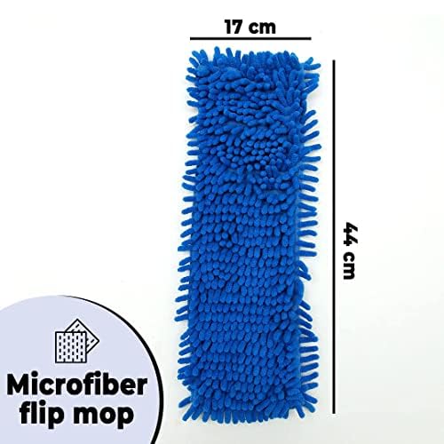 Microfiber Wiper with 2 Additional Floor Cleaner Mop Refill for Floor Clearing | Hypoallergenic Chenille Microfiber Mop | Super Absorbent | Blue