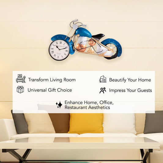 Metal Wall Clock for Home Decor | Metal Wall Art Fancy Clock for Living Room or Drawing Room | Wall Decor Latest Stylish Wall Clock for Bedroom or Sofa Wall (Bullet Bike Style)