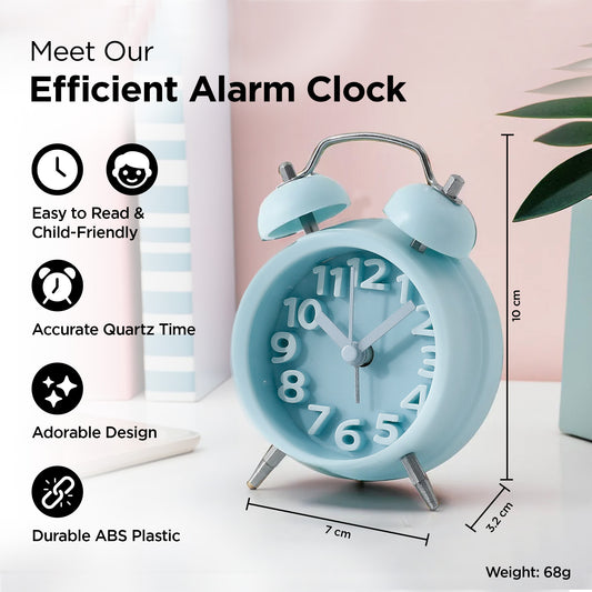Alarm Clock (10cm) |Alarm Clock for Students |Loud Alarm Clock for Heavy Sleepers |Mini Alarm Clock for Kids |Alarm Clock for Bedroom |Wake Up Timer | Twin Bell Table Clock for Study Table- Blue