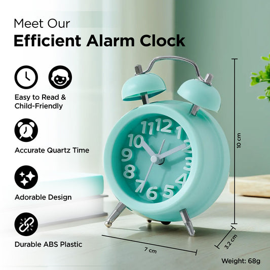 Alarm Clock (10cm) |Alarm Clock for Students |Loud Alarm Clock for Heavy Sleepers |Mini Alarm Clock for Kids |Alarm Clock for Bedroom |Wake Up Timer | Twin Bell Table Clock for Study Table-Green