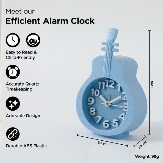 Alarm Clock (15cm) |Alarm Clock For Students |Loud Alarm Clock For Heavy Sleepers |Mini Alarm Clock For Kids |Alarm Clock For Bedroom |Table Watch|Violin Shaped Table Clock For Study Table - Blue