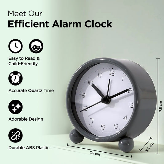 Alarm Clock (7.5cm) |Alarm Clock For Students |Loud Alarm Clock For Heavy Sleepers |Mini Alarm Clock For Kids |Alarm Clock For Bedroom |Table Watch|Round Shaped Table Clock For Study Table - Grey
