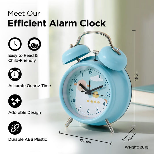 Alarm Clock with Night Light(16cm) |Alarm Clock for Students |Loud Alarm Clock for Heavy Sleepers |Mini Alarm Clock for Kids |Alarm Clock for Bedroom |Twin Bell Table Clock for Study Table-Blue