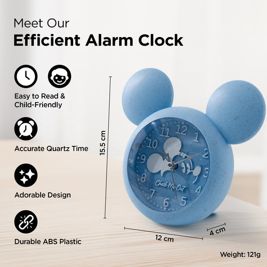 Alarm Clock (15cm) | Alarm Clock for Students | Loud Alarm Clock for Heavy Sleepers | Mini Alarm Clock for Kids | Alarm Clock for Bedroom | Mickey Mouse Shaped Table Clock for Study Table - Blue