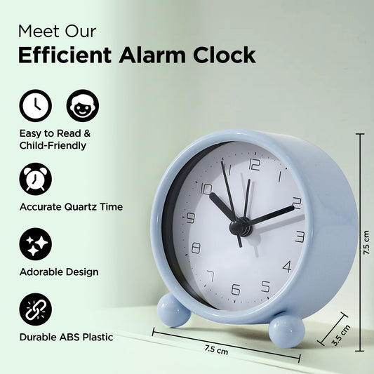Alarm Clock (7.5cm) |Alarm Clock For Students |Loud Alarm Clock For Heavy Sleepers |Mini Alarm Clock For Kids |Alarm Clock For Bedroom |Table Watch| Round Shaped Table Clock For Study Table -Blue
