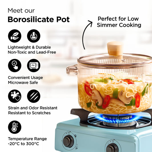 Borosilicate Glass 2.3L Saucepan with Lid - Microwave & Gas Stove Safe | Transparent