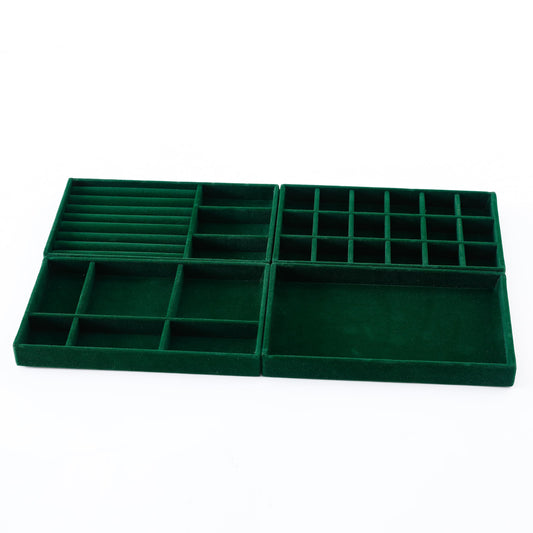 Homestic 4 Pieces Velvet Jewelry Trays Organizer | Jewelry Storage Box | Jewelry Organizer | Showcase Holder Dresser Organizer for Earring Necklace Ring | Pack of 1 | YBL4-05 |Dark Green